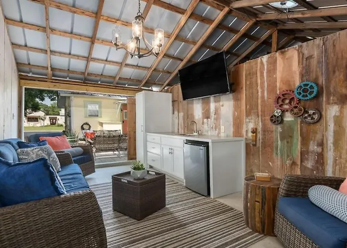 Zusätzliche Dienstleistungen im ***Cottage On Mistletoe Hot Tub Outdoor Party Barn Fredericksburg*** inkludieren einen entspannenden Hot Tub, der nach einem langen Tag für Erholung sorgt. Auch eine Outdoor Party Barn steht zur Verfügung, um besondere Anlässe oder Feiern mit Stil zu gestalten. Hier können unvergessliche Erinnerungen geschaffen werden, während die offene Natur ein großartiges Ambiente bietet.